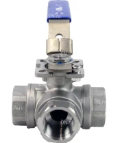 Кран шаровой DN.RU BV3232P(4pc)-SP-3WL-T-ISO-H Ду25 Ру63, 3-ходовой L-тип стандартнопроходной, внутренняя резьба, уплотнение - PTFE, материал корпуса - нержавеющая сталь SS316 с ISO фланцем и рукояткой Самара
