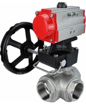 Кран шаровой DN.ru BV3232P(4pc)-SP-3WL-T-ISO-H Ду25 Ру63 стандартнопроходной трехходовой L-тип, нерж. сталь SS316, внутренняя резьба, уплотнение - PTFE, с пневмоприводом PA-DA-065 и ручным дублером MON1-250-T26-ISO с сертификатами качества. Доставка. Гарантия. В наличии! Звоните!