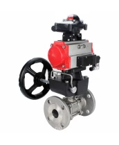 Кран шаровой DN.ru BV3131P(3pc)-FP-F-ISO-H Ду32 Ру40, трехсоставной полнопроходной фланцевый, нержавеющая сталь SS304, PTFE, с пневмоприводом PA-DA-052, с пн.распределителем 4М310-08 24В NAMUR, с БКВ APL-210N, с ручным дублером MON1-250-T26-ISO Самара