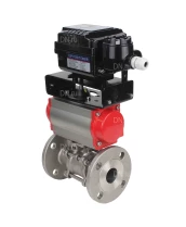 Кран шаровой DN.ru BV3131P(3pc)-FP-F-ISO-H Ду50 Ру40, трехсоставной полнопроходной фланцевый, нержавеющая сталь SS304, PTFE, с пневмоприводом PA-DA-083 двойного действия и с электропневматическим поворотным позиционером YT-1000RSN с обратной связью
