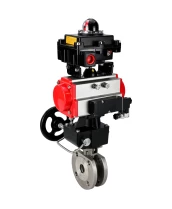 Кран шаровой DN.ru BV3232P-FP-Fb-ISO-H Ду32 Ру16, полнопроходной межфланцевый, нержавеющая сталь SS316, PTFE, с пневмоприводом PA-DA-052 двойного действия, с пневмораспределителем 4М310-08 24В NAMUR, с БКВ APL-410N EX, с ручным дублером MON1-250-T26-ISO Самара