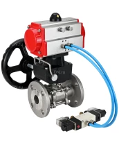 Кран шаровой DN.ru BV3232P(3pc)-FP-F-ISO-H Ду50 Ру40, трехсоставной полнопроходной фланцевый, нержавеющая сталь SS304, уплотнение - PTFE, с пневмоприводом PA-DA-083, с пневмораспределителем 4V320-08 220В, с ручным дублером MON2-450-T28-ISO с сертификатами качества. Доставка. Гарантия. В наличии! Звоните!