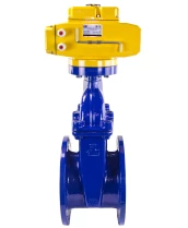 Задвижка клиновая 30ч939р (аналог МЗВ) DN.ru GVWN1414E-2W-F Ду200 Ру10 фланцевая,клин - обрезиненный, шпиндель - невыдвижной, корпус - чугун GGG-50, уплотнение - EPDM, с электроприводом DN.ru MT-N-030EM-О1-380VAC-У1, цвет- синий