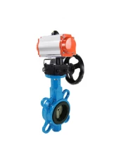 Затвор дисковый поворотный DN.ru WBV1413E-2W-Fb-H Ду150 Ру16, корпус - чугун GGG50, диск - чугун GGG40, уплотнение - EPDM, с пневмоприводом DN.ru PA-DA-105 двойного действия, с ручным дублером MON3-700-T38-ISO Самара