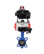 Затвор дисковый поворотный DN.ru WBV1413E-2W-Fb-H Ду50 Ру16, корпус - чугун GGG50, диск - чугун GGG40, уплотнение - EPDM, с пневмоприводом DN.ru PA-DA-065 двойного действия, пневмораспределителем 4М310-08 24В NAMUR, БКВ APL-410N EX с сертификатами качества. Доставка. Гарантия. В наличии! Звоните!