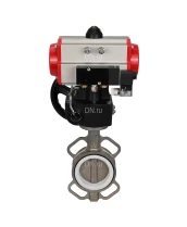 Затвор дисковый поворотный DN.ru WBV3232P-2W-Fb-H Ду80 Ру16, корпус - нержавеющая сталь 316L, диск - нержавеющая сталь 316L, уплотнение - PTFE, с пневмоприводом PA-DA-083, с пневмораспределителем 4V320-08 220В, с ручным дублером MON2-450-T28-ISO