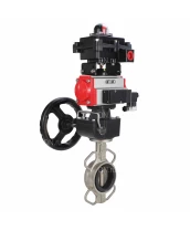 Затвор дисковый поворотный DN.ru WBV3232V-2W-Fb-H Ду50 Ру16, корпус - нержавеющая сталь 316L, диск - нержавеющая сталь 316L, Viton, с пневмоприводом PA-DA-065, с пневмораспределителем 4V320-08 220В, с БКВ APL-410N EX, с ручным дублером MON1-250-T26-ISO с сертификатами качества. Доставка. Гарантия. В наличии! Звоните!
