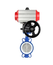 Затвор дисковый поворотный DN.ru WBV3432P-2W-Fb-H Ду300 Ру16, корпус - углеродистая сталь WCB, диск - нержавеющая сталь 316L, уплотнение - PTFE, с пневмоприводом PA-DA-160, с пневмораспределителем 4V320-08 220В, с ручным дублером MON4-1200-T54-ISO