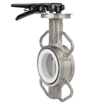 Затвор дисковый поворотный DN.ru WBV3232P-2W-Fb-H Ду65 Ру16 межфланцевый, корпус - нержавеющая сталь 316L, диск - нержавеющая сталь 316L, уплотнение - PTFE, с рукояткой, квадрат 9х9, F05
